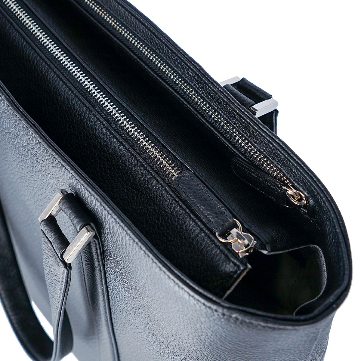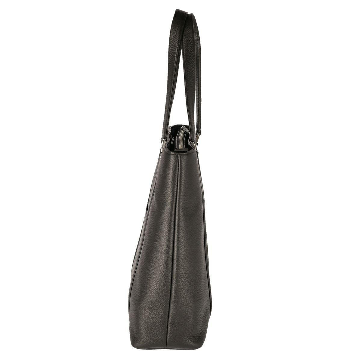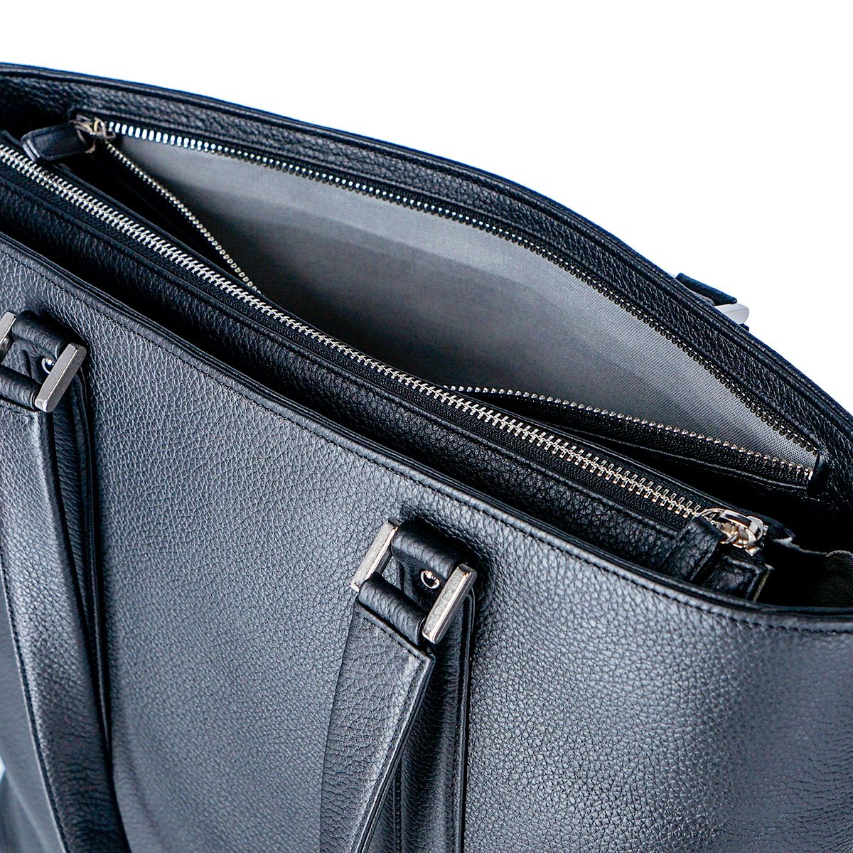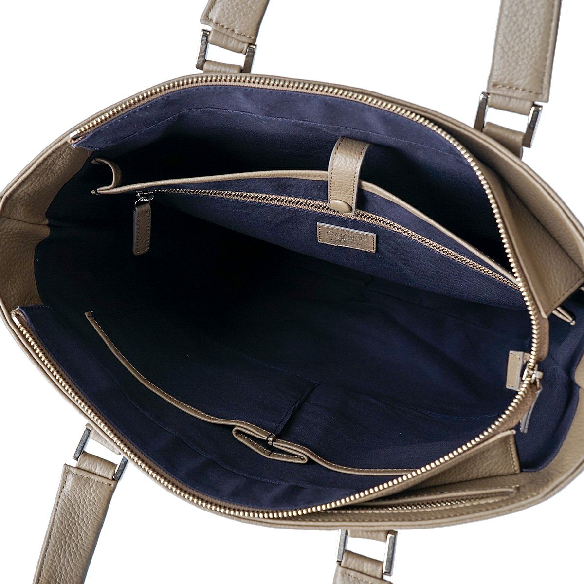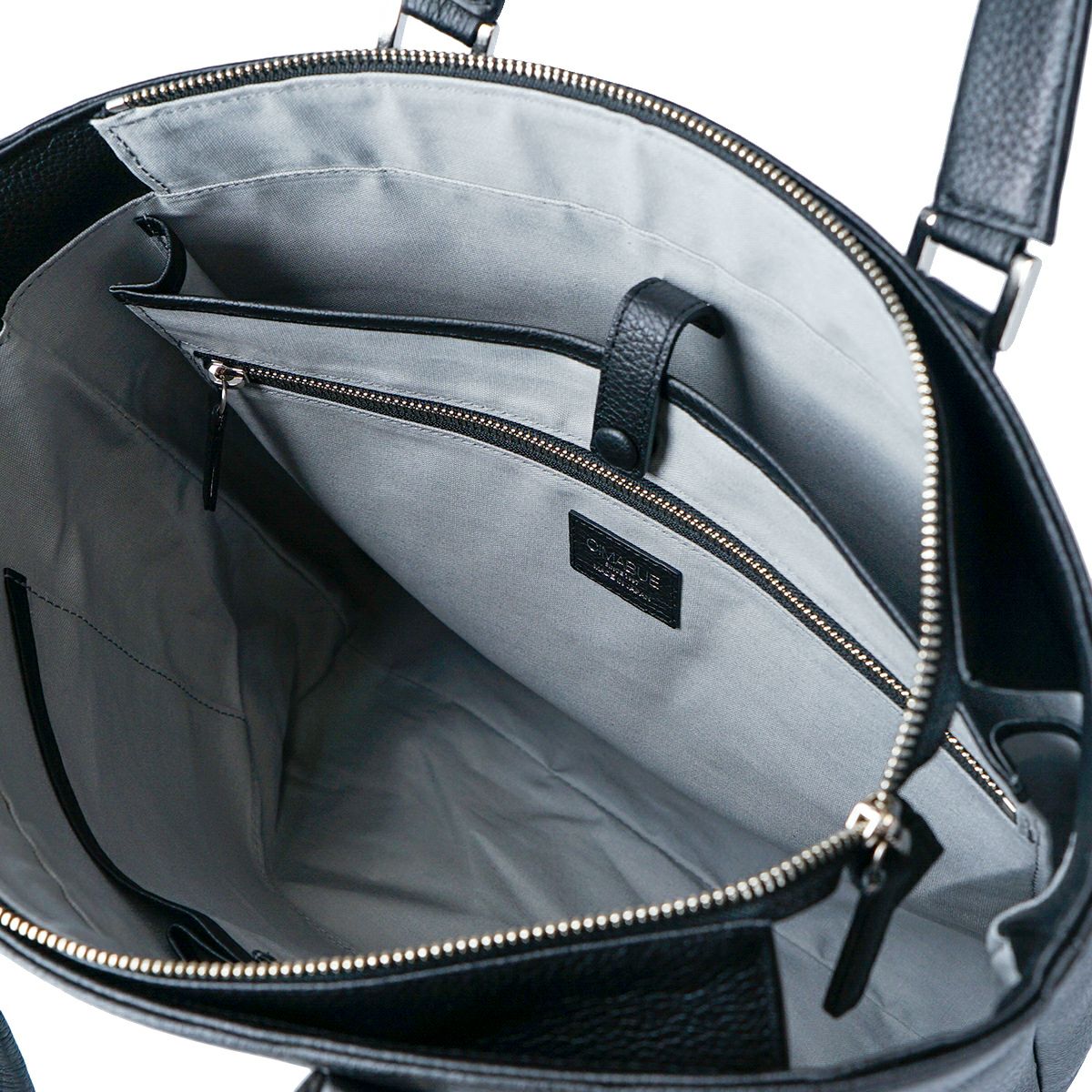 姫路レザーを使用してMADE IN TOKYO で生産された本革シュリンク縦型トートバッグです。 開口部には使い勝手の良い天井ファスナーと、そのサイドには浅くて取り出しやすいファスナーポケットがあり、内装にも3つのオープンポケットと1つの ファスナーポケットがあります。A4 ファイルは縦にも横にも難なく収納可能です。