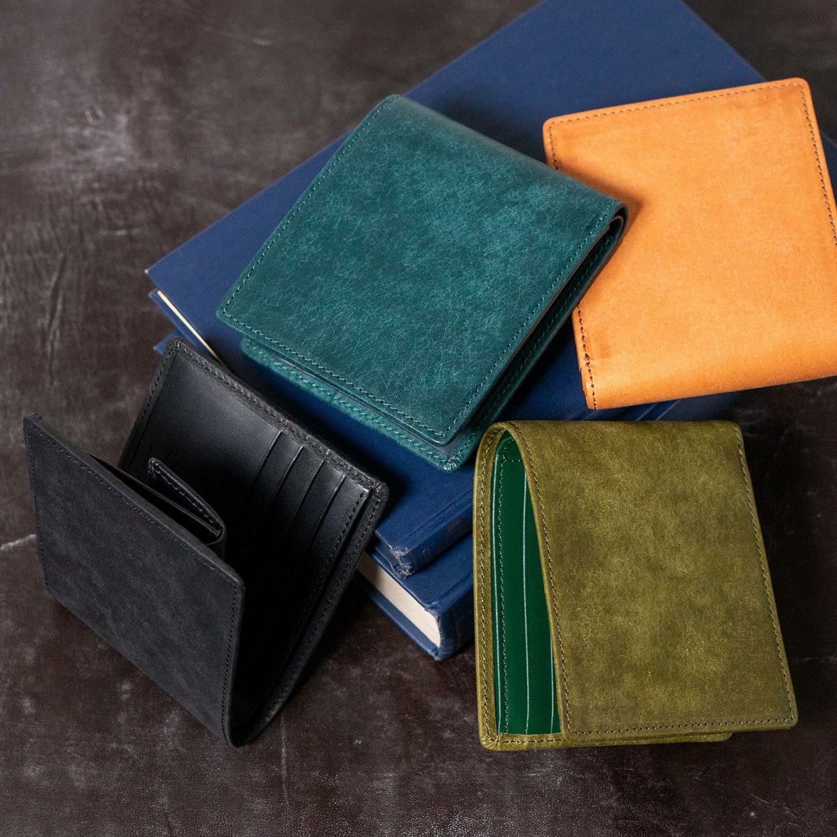 透明感のある美しい色が特徴のアニリンコードバン、ドイツの名門タンナー「ペリンガー社」、ガルーシャやクロコダイルなどエキゾチックレザーの数々。