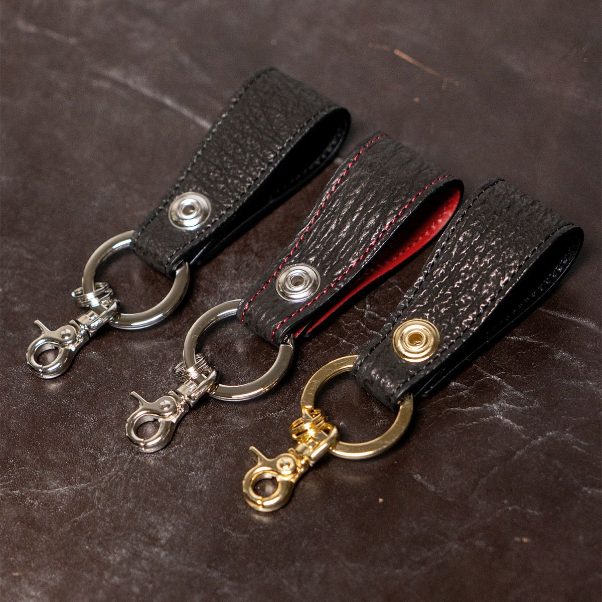 透明感のある美しい色が特徴のアニリンコードバン、ドイツの名門タンナー「ペリンガー社」、ガルーシャやクロコダイルなどエキゾチックレザーの数々。