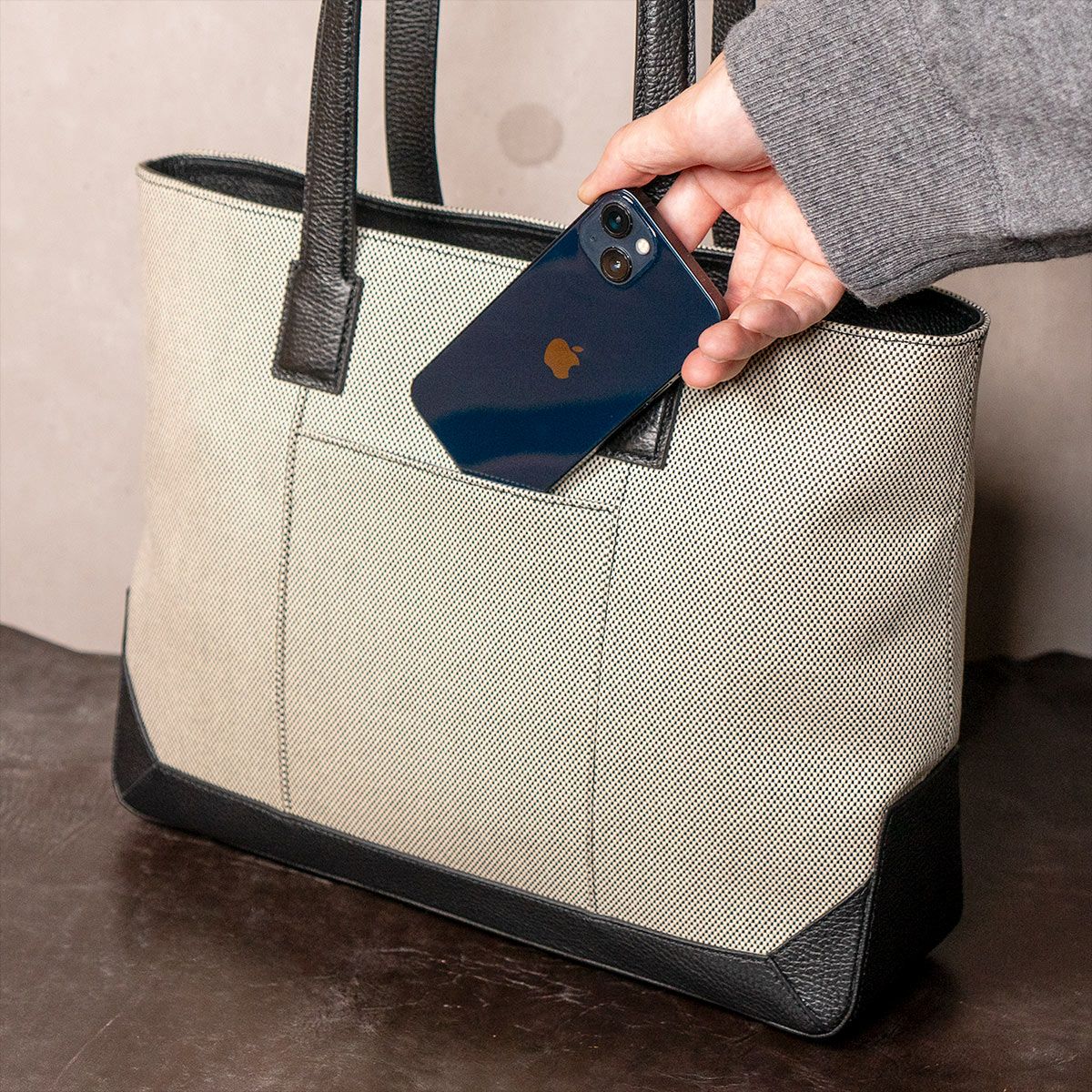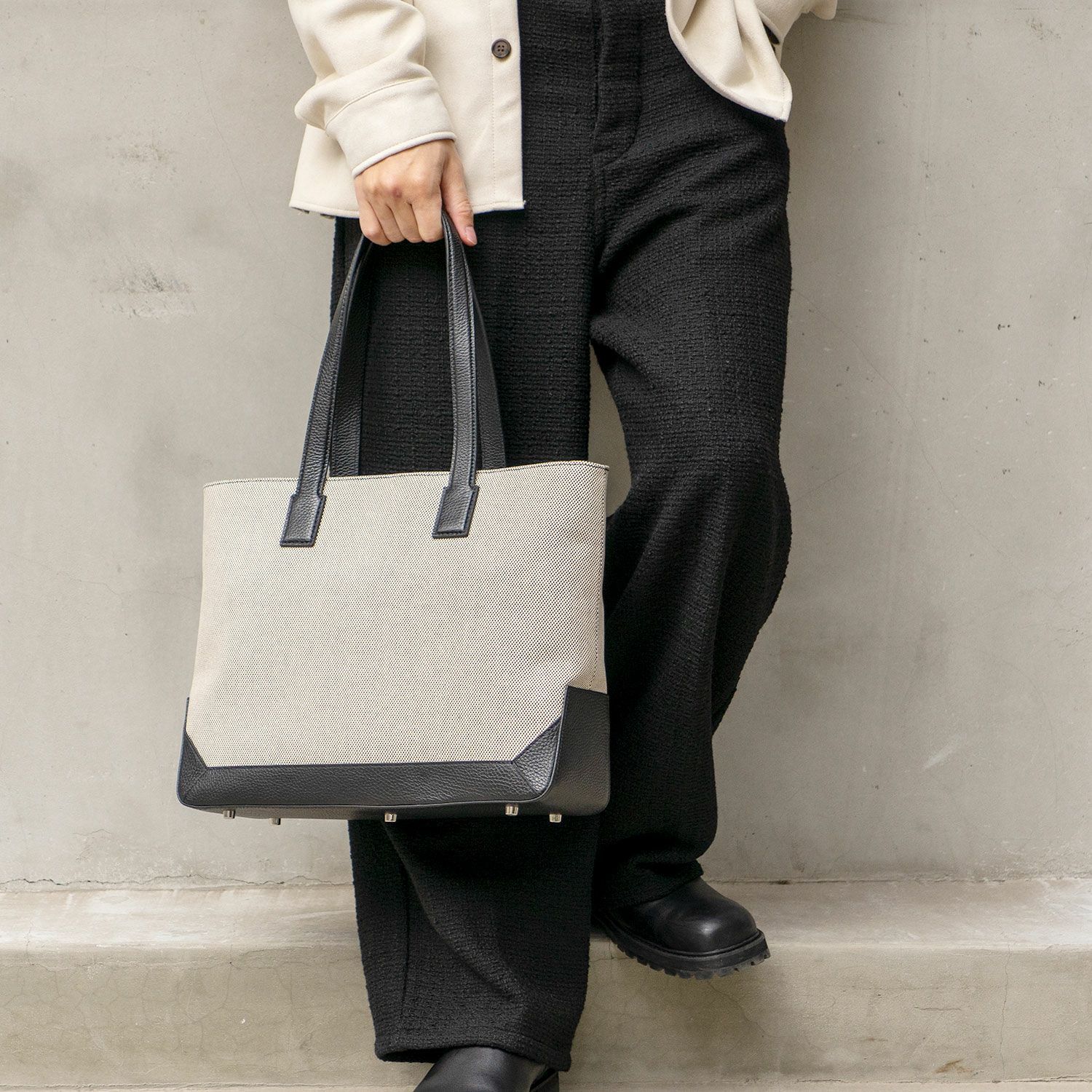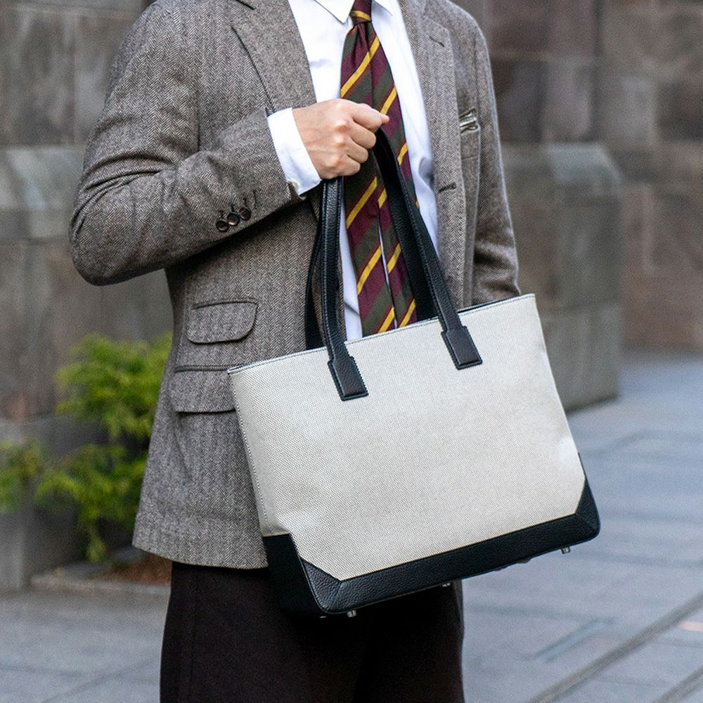 キャンバスコンビ ボックストートバッグ