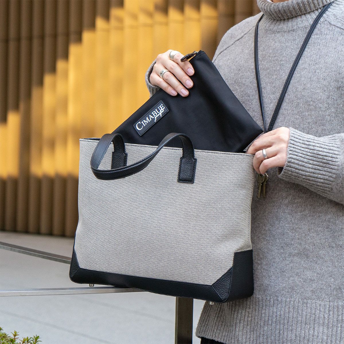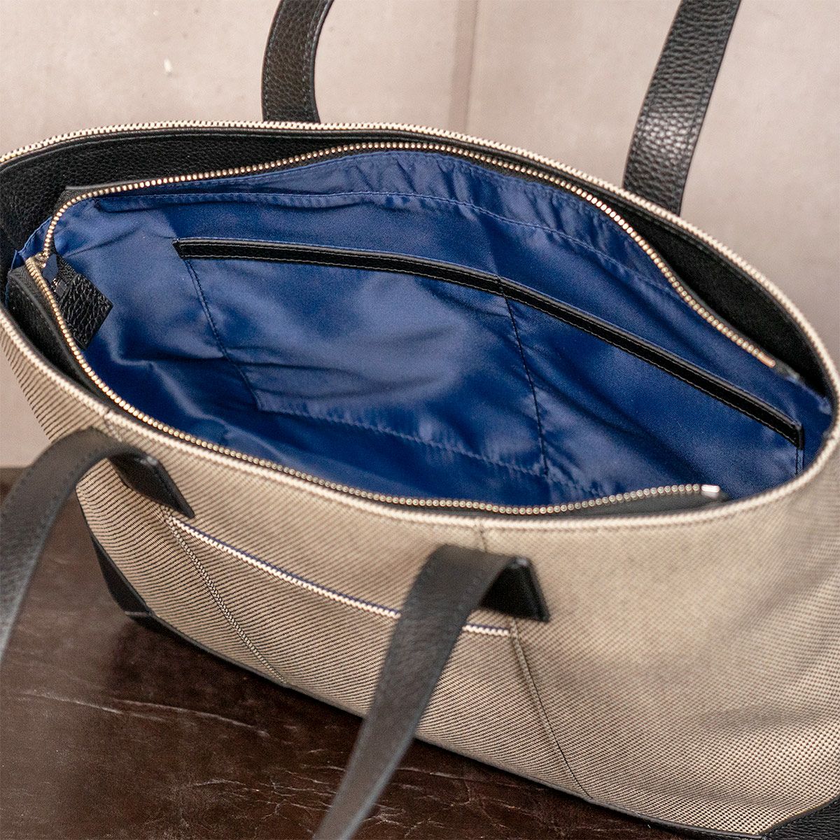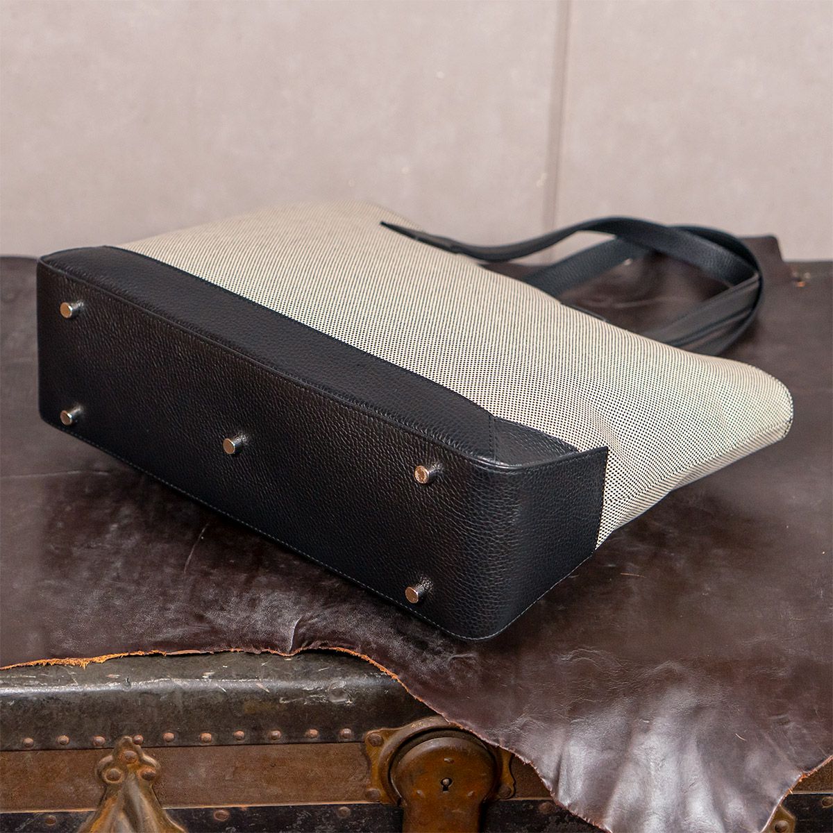 キャンバスコンビ ボックストートバッグ
